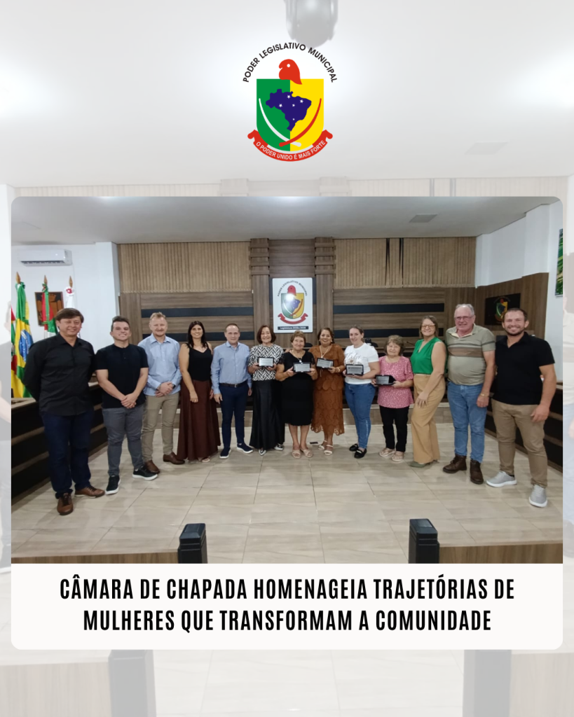 Em uma sessão ordinária marcada pela emoção e pelo reconhecimento, a Câmara Municipal de Vereadores de Chapada realizou, na terça-feira, 31 de março, uma cerimônia especial em homenagem ao protagonismo feminino local. Na oportunidade, cinco mulheres receberam placas comemorativas das mãos dos parlamentares.